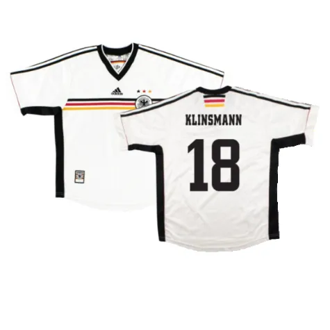 The Germany 1998-00 Home Shirt as worn by players such as Klinsmann, Matthaus, Kohler, Hasler and Moller as the team reached the Quarter-Final at the 1998 World Cup.