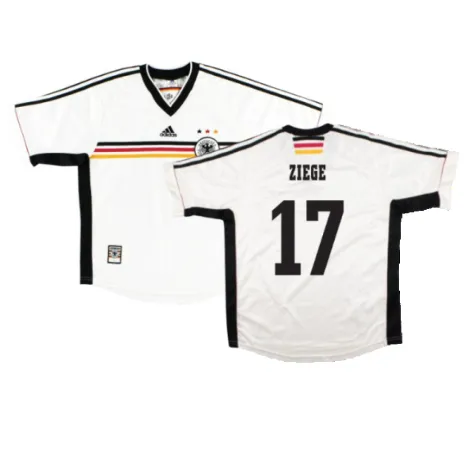 The Germany 1998-00 Home Shirt as worn by players such as Klinsmann, Matthaus, Kohler, Hasler and Moller as the team reached the Quarter-Final at the 1998 World Cup.