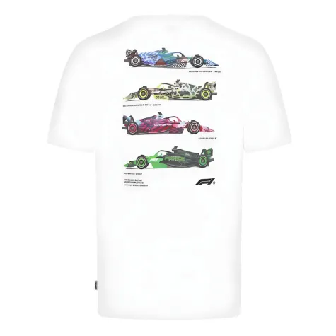 The sleek and stylish Formula 1 Tech Collection F1 Car Graphic T-Shirt in White.  Show off your love for racing and stand out in this eye-catching tee. Perfect for any true Formula 1 fan, this shirt is a must-have addition to your wardrobe.