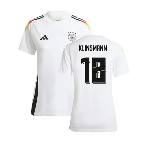 Official Jurgen Klinsmann football shirt. This is the NEW Germany Home Fan Shirt (Ladies) for the 2024-2025 season which is manufactured by Adidas and is available in all Adult sizes.