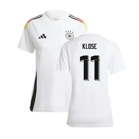 Official Miroslav Klose football shirt. This is the NEW Germany Home Fan Shirt (Ladies) for the 2024-2025 season which is manufactured by Adidas and is available in all Adult sizes.