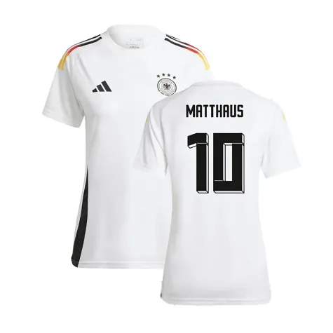 Official Lothar Matthaus football shirt. This is the NEW Germany Home Fan Shirt (Ladies) for the 2024-2025 season which is manufactured by Adidas and is available in all Adult sizes.