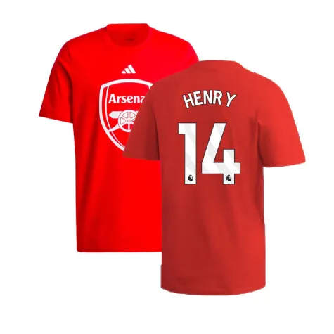 Official Thierry Henry football shirt. This is the NEW Arsenal DNA Graphic Tee (Red) for the 2024-2025 season which is manufactured by Adidas and is available in all Adult sizes.