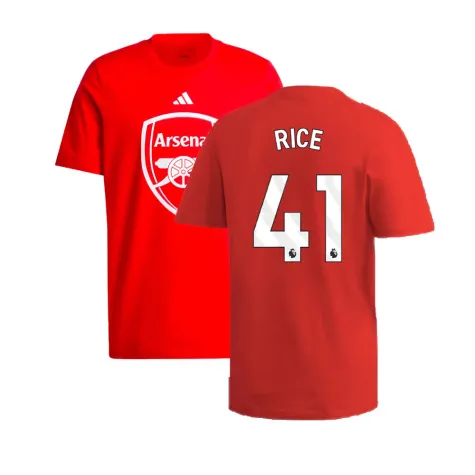 Official Declan Rice football shirt. This is the NEW Arsenal DNA Graphic Tee (Red) for the 2024-2025 season which is manufactured by Adidas and is available in all Adult sizes.