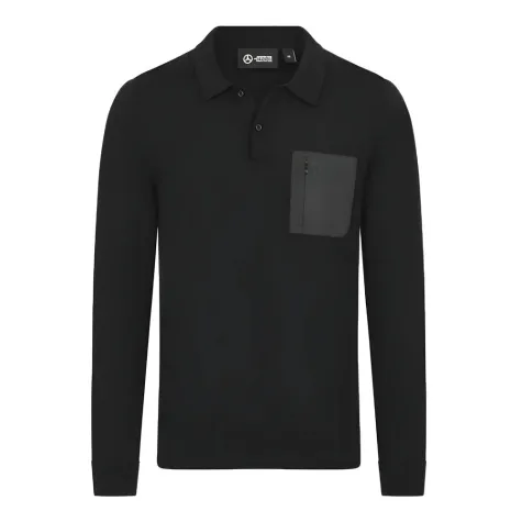 Step into effortless style with the 2024 Mercedes Mens Elevated Knit Polo in sleek black. This modern long sleeve polo will become your new wardrobe MVP with its soft knit fabric and polished design.