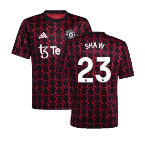 Official Luke Shaw football shirt. This is the NEW Man Utd Pre-Match Shirt (Black) - Kids for the 2024-2025 season which is manufactured by Adidas and is available in all Childrens sizes.