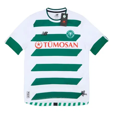 The Konyaspor 2023-24 home shirt features the classic green and white stripes with a modern twist. The green horizontal stripes cover the shirt in an almost highlighter design over the sleek white base. A simple round-neck collar completes the look, with the same colour green giving the sleeve cuffs that final extra touch.