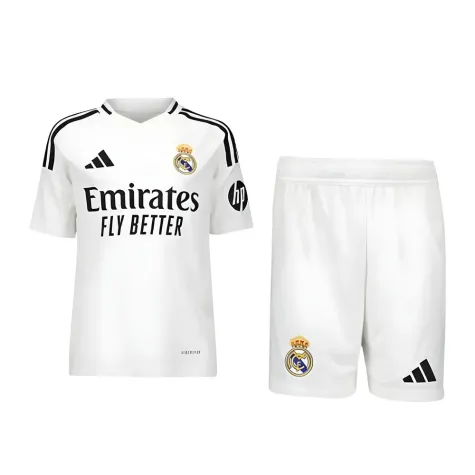 Show your football passion in this juniors' Real Madrid home kit from adidas. Sharing the festival-inspired design of the match kit, it also displays a pair of heat-applied badges. Smooth interlock fabric and AEROREADY tech will keep you comfortable, dry and focused whether you're playing or supporting.