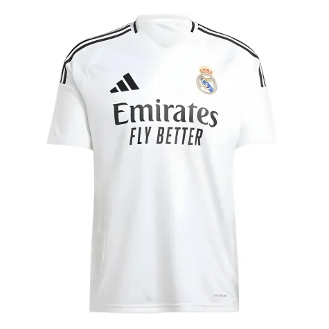 When adidas designed Real Madrid's home kit, they looked to the long-held traditions of the club's famous city. Inspired by the "chulapo" outfits worn at Madrid's annual San Isidro Fiesta, the houndstooth-style patterning on this soccer jersey gives it a dash of style. Also featuring moisture-managing AEROREADY and a embroidered club badge, this top is made for the fans. This product is made with 100% recycled materials.