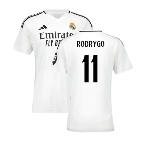 Official Rodrygo football shirt. This is the NEW Real Madrid Home Shirt (Womens) for the 2024-2025 season which is manufactured by Adidas and is available in all Adult sizes.