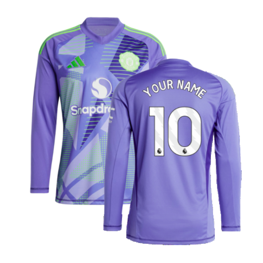 Official Your Name football shirt. This is the NEW Man Utd Home LS Goalkeeper Shirt (Purple) for the 2024-2025 season which is manufactured by Adidas and is available in all Adult sizes.