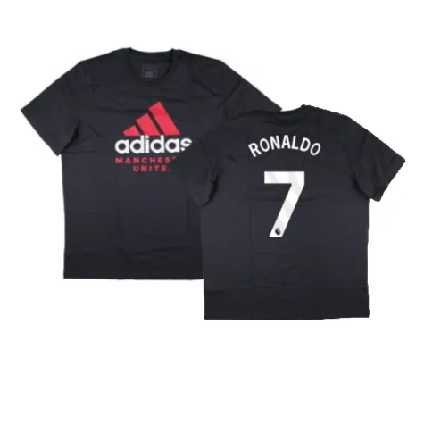 Official Cristiano Ronaldo football shirt. This is the NEW Man Utd Seasonal Graphic Tee (Night Grey) for the 2024-2025 season which is manufactured by Adidas and is available in all Adult sizes.