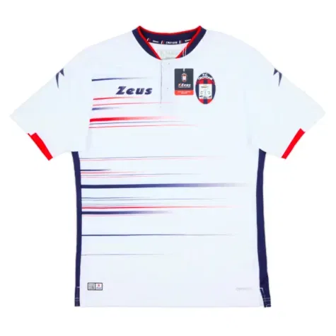 Cheer on Crotone in style with the 2019-2020 Away Shirt, designed for both comfort and performance. This jersey features a sleek design in the team's away colours, offering fans and players alike a chance to show their support on match days. With its lightweight and breathable fabric, it ensures optimal comfort throughout the game, whether you're in the stands or on the pitch. The shirt is adorned with team logos and possibly sponsors, completing its authentic look. Ideal for fans collecting memorabilia or joining in the team spirit during away fixtures.