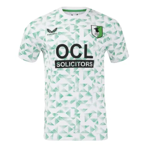 Craft your legacy with every match in this Mansfield 2024-2025 Away Shirt. The set-in sleeve construction and crew neck collar combine to ensure a tailored fit for peak performance while this seasons dynamic Brilliant White, Bright Green and Caviar colourway guarantees you stand out with every tackle, pass, and goal.