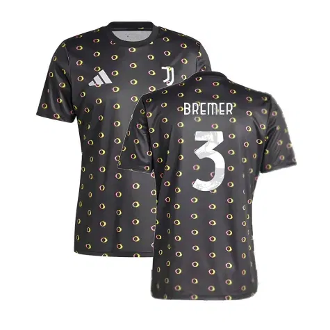 Official Bremer football shirt. This is the NEW Juventus Pre-Match Shirt (Black) for the 2024-2025 season which is manufactured by Adidas and is available in all Adult sizes.