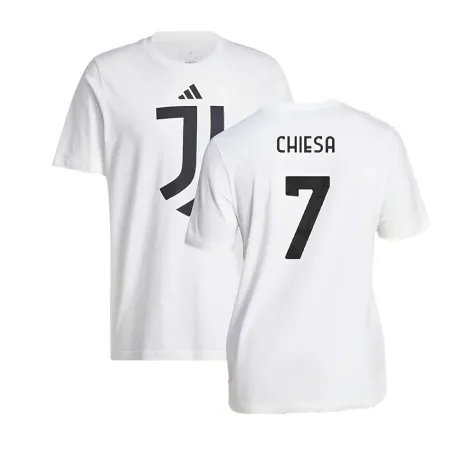 Official Federico Chiesa football shirt. This is the NEW Juventus DNA Graphic Tee (White) for the 2024-2025 season which is manufactured by Adidas and is available in all Adult sizes.