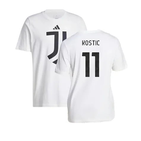 Official Filip Kostic football shirt. This is the NEW Juventus DNA Graphic Tee (White) for the 2024-2025 season which is manufactured by Adidas and is available in all Adult sizes.