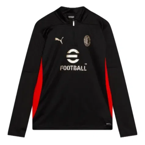 The AC Milan long-sleeve kids jersey from the Training 2024-2025 collection with a 1/4 zipper, contrasting prints and details. The club wears the Training line during its practice sessions.