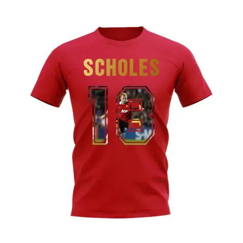 Paul Scholes Name And Number Manchester United T-Shirt (Red)