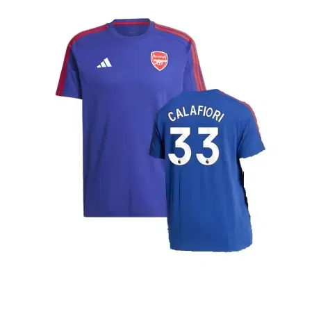 Official Riccardo Calafiori football shirt. This is the NEW  Arsenal DNA Tee (Victory Blue) for the 2024-2025 season which is manufactured by Adidas and is available in all Adult sizes.