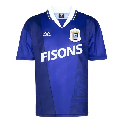 A classic retro football shirt for Ipswich Town FC reproduced by Score Draw and licensed by Umbro. A difficult season for Ipswich saw them relegated from the Premier League after a couple of years. Worn by players including Ian Marshall, Lee Chapman and Steve Sedgley.