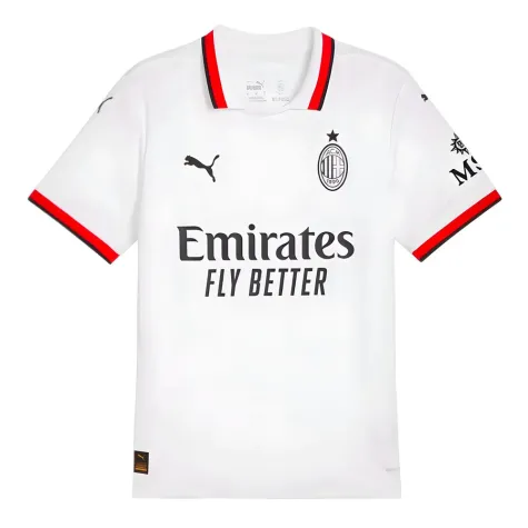 Details make all the difference in the 2024-2025 AC Milan Away Kit. The classic white away combined with a red-and-black polo collar and monochromatic crest personifies the spirit of success and casual sophistication of a team synonymous with the Beautiful Game. Tonal pinstripe pattern adds a historic touch, honoring AC Milans origins as the Milan Football Club