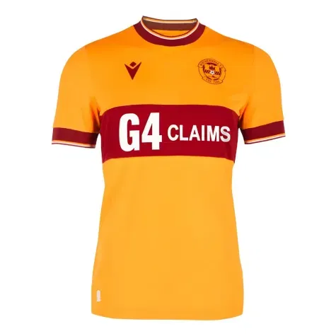 The 2023-2024 shirt shows off a truly traditional Motherwell FC look and feel. The iconic claret hoop returns to the middle of the shirt, which makes its way round the back of the shirt. A claret round neck collar and claret cuffs containing amber and white, with a subtle box pattern throughout the shirt.