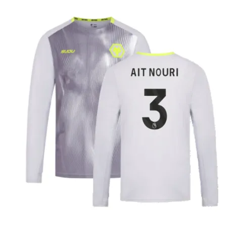 Official Rayan Ait-Nouri football shirt. This is the NEW Wolves Players Training Long Sleeved Tee (Grey) for the 2024-2025 season which is manufactured by Sudu and is available in all Adult sizes.