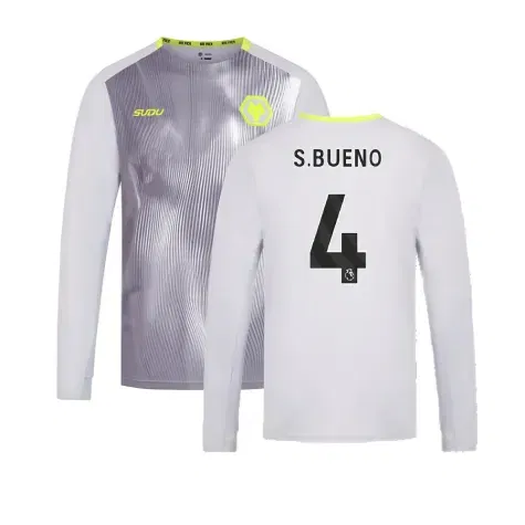 Official Santiago Bueno football shirt. This is the NEW Wolves Players Training Long Sleeved Tee (Grey) for the 2024-2025 season which is manufactured by Sudu and is available in all Adult sizes.