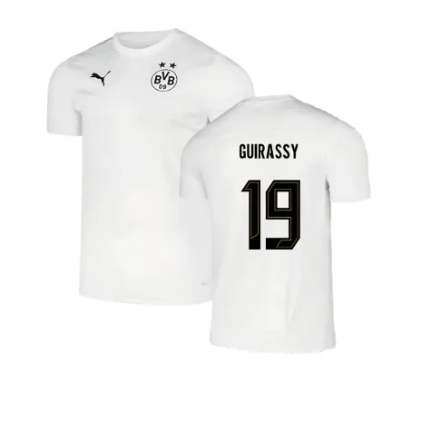 Official Serhou Guirassy football shirt. This is the NEW Borussia Dortmund Pre-Match Shirt (White) for the 2024-2025 season which is manufactured by Puma and is available in all Adult sizes.