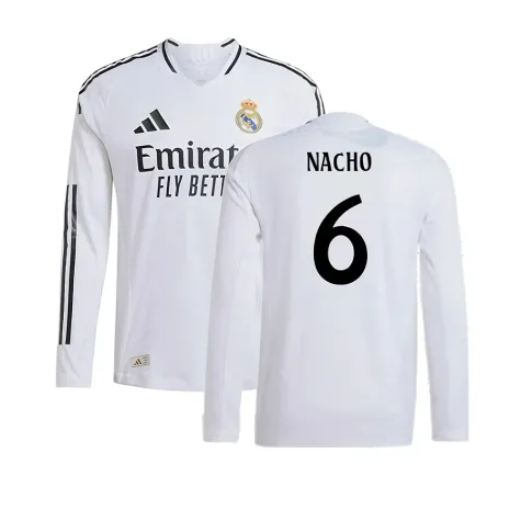 Official Nacho football shirt. This is the NEW Real Madrid Authentic Long Sleeve Home Shirt for the 2024-2025 season which is manufactured by Adidas and is available in all Adult sizes.