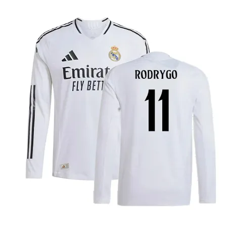 2024-2025 Real Madrid Authentic Long Sleeve Home Shirt (Rodrygo 11)