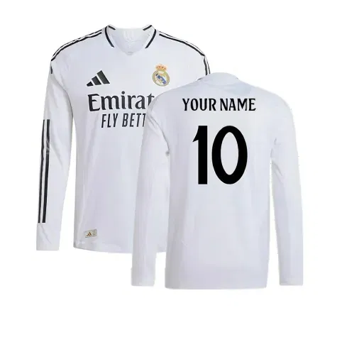 Official Your Name football shirt. This is the NEW Real Madrid Authentic Long Sleeve Home Shirt for the 2024-2025 season which is manufactured by Adidas and is available in all Adult sizes.