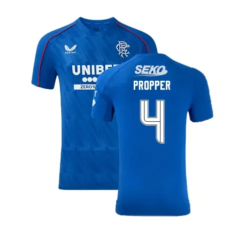Official Robin Propper football shirt. This is the NEW Rangers Authentic Pro Home Shirt for the 2024-2025 season which is manufactured by Castore and is available in all Adult sizes.