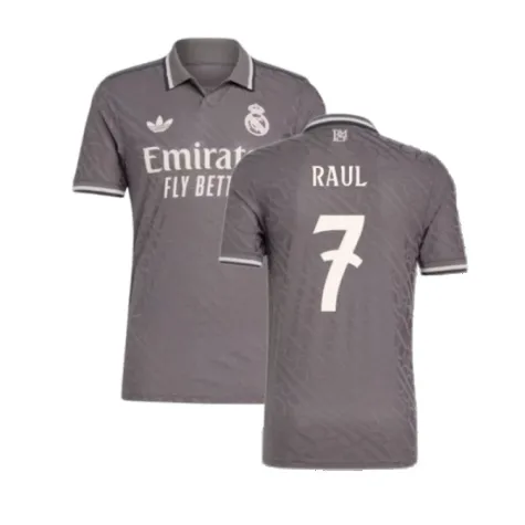 Official Raul football shirt. This is the NEW Real Madrid Third Shirt for the 2024-2025 season which is manufactured by Adidas and is available in all Adult sizes.
