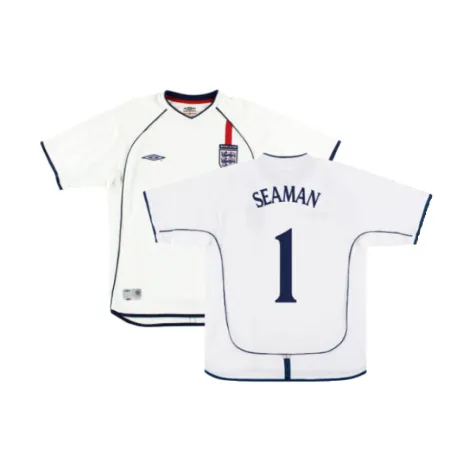 The England 2001-03 Home Shirt as worn by players such as Southgate, Cole, Owen, Scholes and David Beckham as the team reached the Quarter Finals in the 2002 FIFA World Cup.