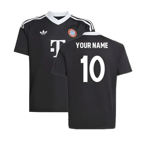 Official Your Name football shirt. This is the NEW Bayern Munich Third Goalkeeper Shirt (Black) - Kids for the 2024-2025 season which is manufactured by Adidas and is available in all Childrens sizes.