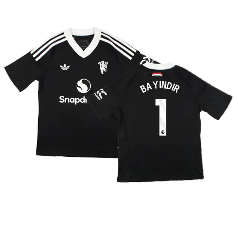 Official Altay Bayindir football shirt. This is the NEW Man Utd Third Goalkeeper Shirt (Black) - Kids for the 2024-2025 season which is manufactured by Adidas and is available in all Childrens sizes.