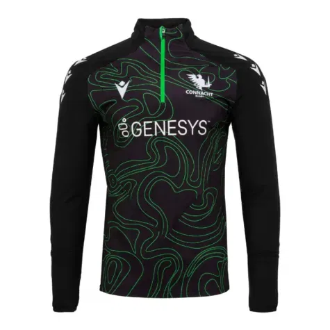 Whether you're in the stands or out and about, the Macron Connacht 2024-2025 Warm Up Quarter Zip Top is a must-have addition to your fan gear collection.