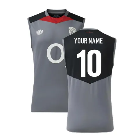 Official Your Name football shirt. This is the NEW England Rugby Sleeveless Jersey O2 (Grey) for the 2024-2025 season which is manufactured by Umbro and is available in all Adult sizes.