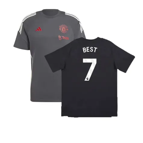Official George Best football shirt. This is the NEW Man Utd EU Training Tee (Carbon) for the 2024-2025 season) which is manufactured by Adidas and is available in all Adult sizes.
