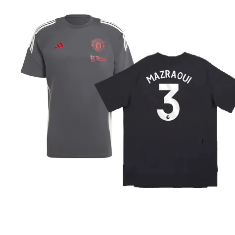 Official Noussair Mazraoui football shirt. This is the NEW Man Utd EU Training Tee (Carbon) for the 2024-2025 season) which is manufactured by Adidas and is available in all Adult sizes.