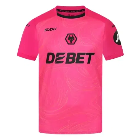 Drenched in a bioluminescent pink hue, this jersey features a fluid graphic that symbolises SUDU's ethos of always moving forward and never standing still. The iconic Wolves club badge takes centre stage, proudly displayed on the chest, making this shirt a must-have for any devoted Wolves fan.?