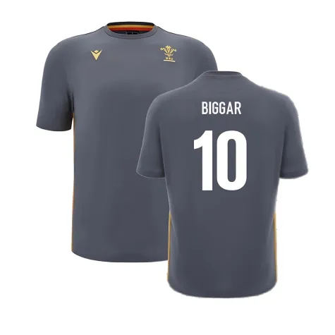 Official Dan Biggar football shirt. This is the NEW Wales Rugby Travel Cotton T-Shirt (Anthracite) for the 2024-2025 season which is manufactured by Macron and is available in all Adult sizes.