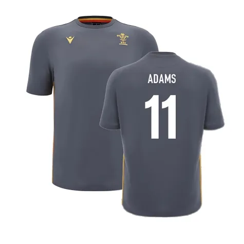 Official Josh Adams football shirt. This is the NEW Wales Rugby Travel Cotton T-Shirt (Anthracite) for the 2024-2025 season which is manufactured by Macron and is available in all Adult sizes.