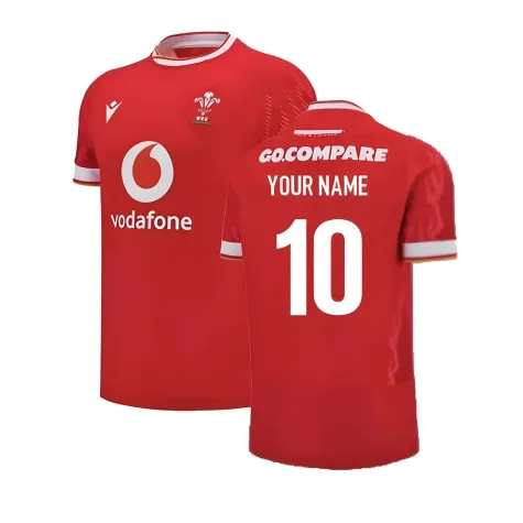Official Your Name football shirt. This is the NEW Wales Rugby Home Slim Fit Shirt for the 2024-2025 season which is manufactured by Macron and is available in all Adult sizes.