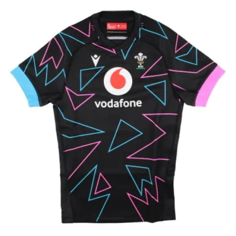 Introducing the WRU Wales 2024-2025 Away Pathway Body Shirt for women, designed for fans who want to showcase their support in style! This short-sleeve shirt is crafted from high-quality, lightweight fabric that ensures comfort and breathability, making it perfect for match days or everyday wear.