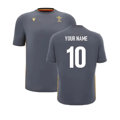 2024-2025 Wales Rugby Travel Cotton T-Shirt (Anthracite) - Kids (Your Name)