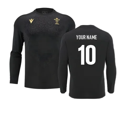 2024-2025 Wales Rugby LS Poly Training Shirt (Black) (Your Name)