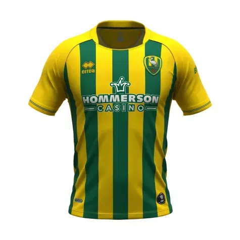 Show your unwavering support for ADO Den Haag with the official 2024-2025 Home Jersey! Designed with passion and precision, this jersey embodies the proud heritage of the club while embracing modern performance technology. The classic green and yellow vertical stripes pay homage to the rich history of ADO Den Haag, making it instantly recognizable on and off the pitch.